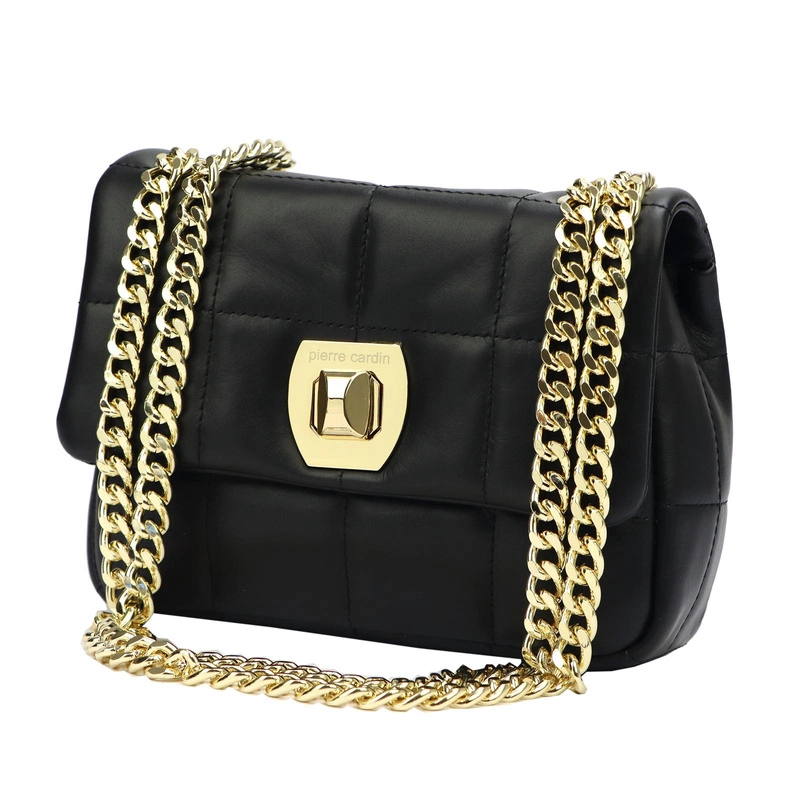 Wykonana z naturalnej skóry, torebka oferuje nie tylko trwałość, ale także luksusowy wygląd. Pikowany wzór dodaje jej wyjątkowego uroku, a złote okucia podkreślają prestiżowy charakter produktu. Widoczne logo producenta subtelnie akcentuje markę Pierre Cardin, będąc jednocześnie eleganckim detalem.