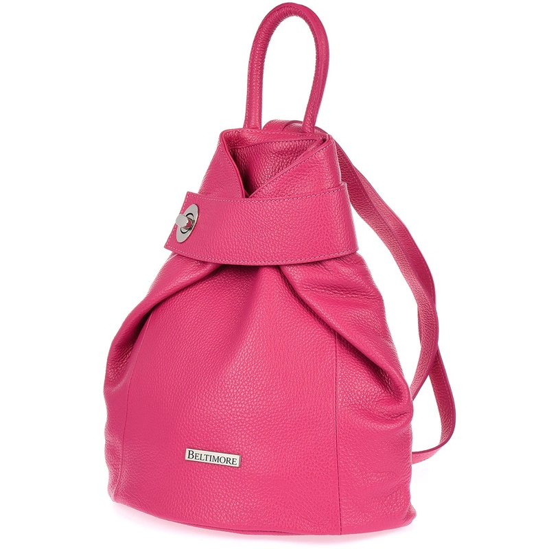 Fuksjowy skórzany plecak damski elegancki z zapięciem Beltimore T54
