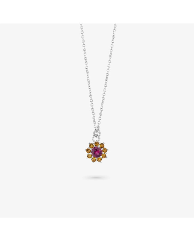 Silver Pink Stone Rosettes Necklace