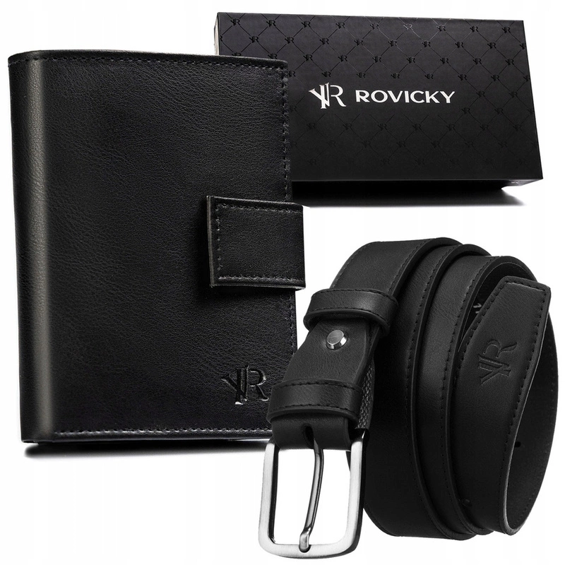 Zestaw prezentowy: portfel na zatrzask i pasek ze skóry ekologicznej - Rovicky