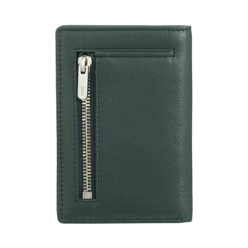 Portfel został wyposażony w sześć przegródek na karty oraz jedną przestronną komorę. Znajdziesz tu także zasuwaną kieszeń zewnętrzną – idealną na monety. Brak zapięcia zapewnia szybki dostęp do zawartości, a starannie dobrane wykończenia świadczą o wysokiej jakości wykonania.