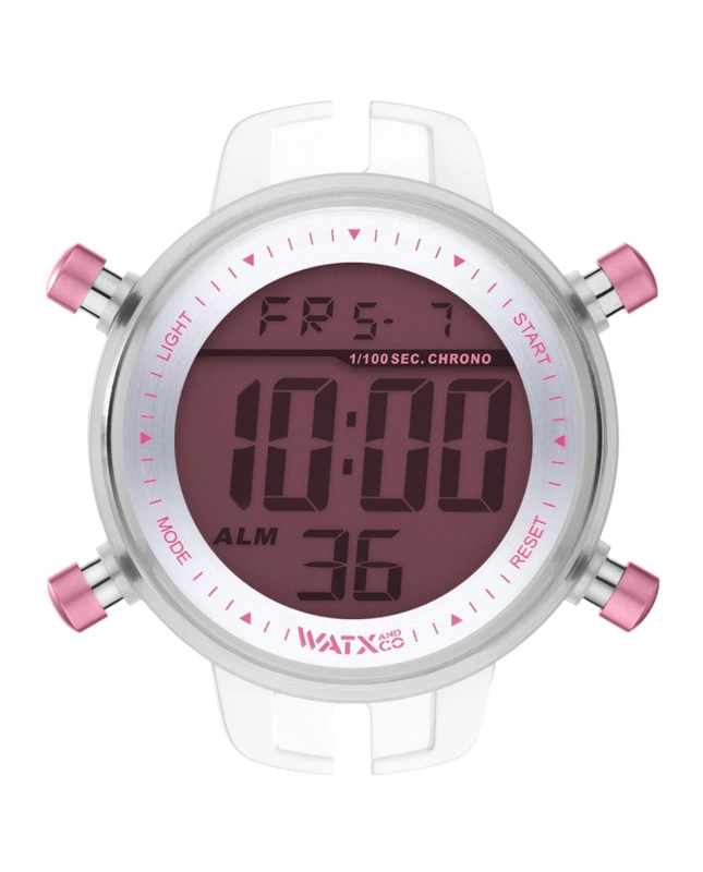 Zegarek WATXANDCO Uniwersalny RWA1099 (43MM). Typ mechanizmu: Kwarcowy. Wyświetlacz: Cyfrowy. Materiał koperty: POLYWęglowyATE. Kolor koperty: Przezroczysty. Materiał bransoletki: . Kolor bransoletki: . Kolor wskazówek: Różowy. Typ szkiełka: Mineralne. Rodzaj zapięcia: . Średnica tarczy: 43MM. Wodoszczelność: 5 ATM