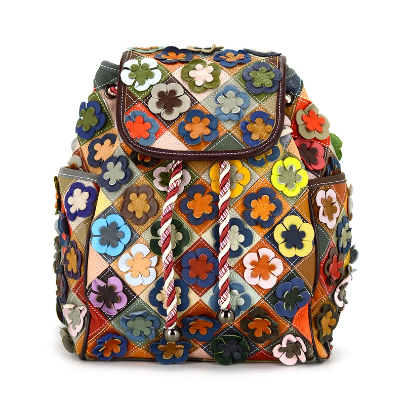 Plecak Damski w wykończony kolorową mozaiką oraz kwiatami - Elegancja na Co Dzień