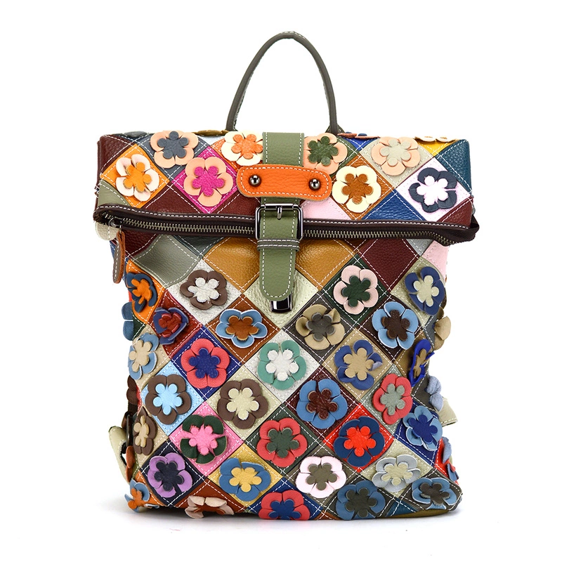 Pojemny plecak skórzany z kolorowym wzorem mozaiki
