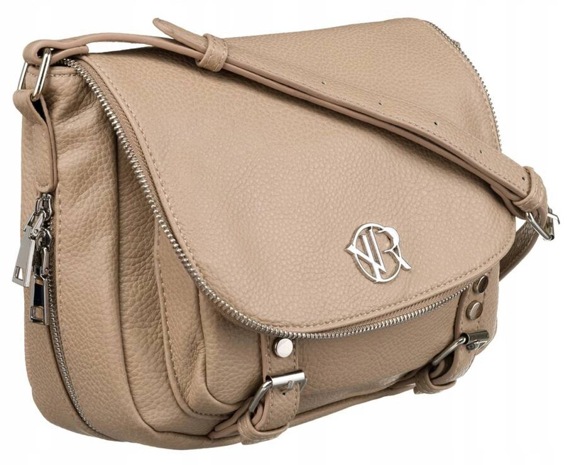 - Torebka odszyta ze skóry ekologicznej o groszkowej fakturze. Zamykana klapką na dwa zatrzaski z ozdobnymi klamrami i zamkiem błyskawicznym. Wyposażona w 2 komory i aż 6 kieszeni. Torebka zawieszona na długim, regulowanym pasku o solidnym mocowaniu.