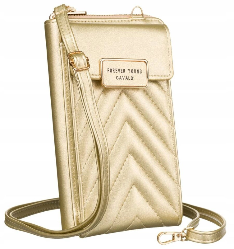 Stylowa i wielofunkcyjna torebka marki Cavaldi to doskonałe połączenie portfela, etui na telefon oraz małej listonoszki. Wykonana z wysokiej jakości skóry ekologicznej o modnym, pikowanym wzorze, prezentuje się elegancko i kobieco. Dzięki złotym okuciom i widocznemu logo producenta, całość nabiera wyjątkowego charakteru.