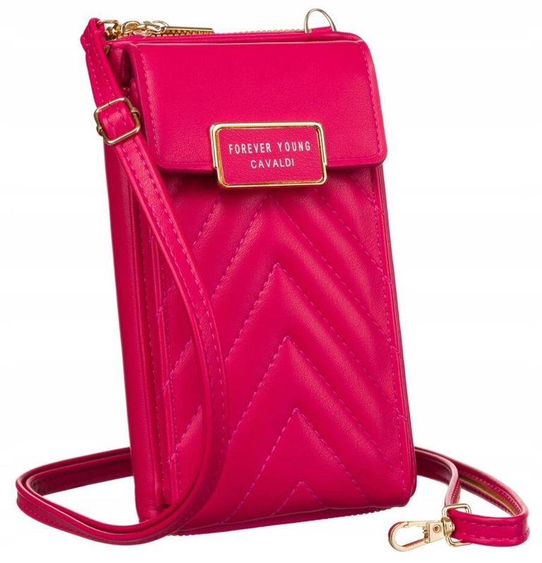 Stylowa i wielofunkcyjna torebka marki Cavaldi to doskonałe połączenie portfela, etui na telefon oraz małej listonoszki. Wykonana z wysokiej jakości skóry ekologicznej o modnym, pikowanym wzorze, prezentuje się elegancko i kobieco. Dzięki złotym okuciom i widocznemu logo producenta, całość nabiera wyjątkowego charakteru.