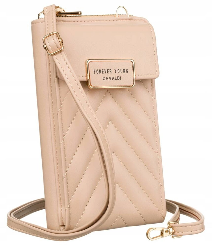 Stylowa i wielofunkcyjna torebka marki Cavaldi to doskonałe połączenie portfela, etui na telefon oraz małej listonoszki. Wykonana z wysokiej jakości skóry ekologicznej o modnym, pikowanym wzorze, prezentuje się elegancko i kobieco. Dzięki złotym okuciom i widocznemu logo producenta, całość nabiera wyjątkowego charakteru.