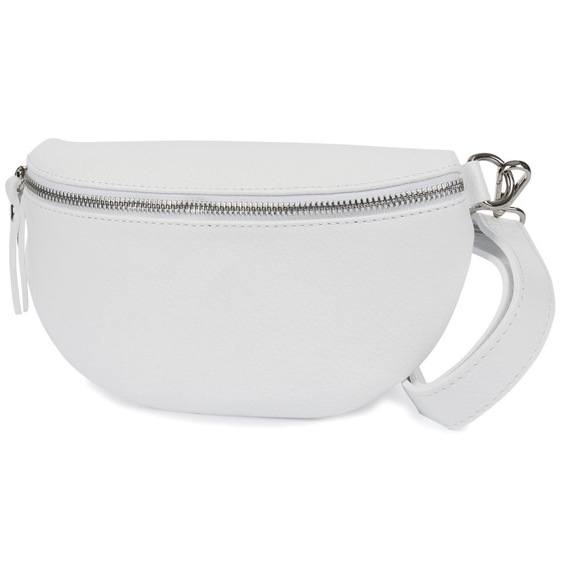 Damska Skórzana Włoska Saszetka Nerka na pasek biała B68