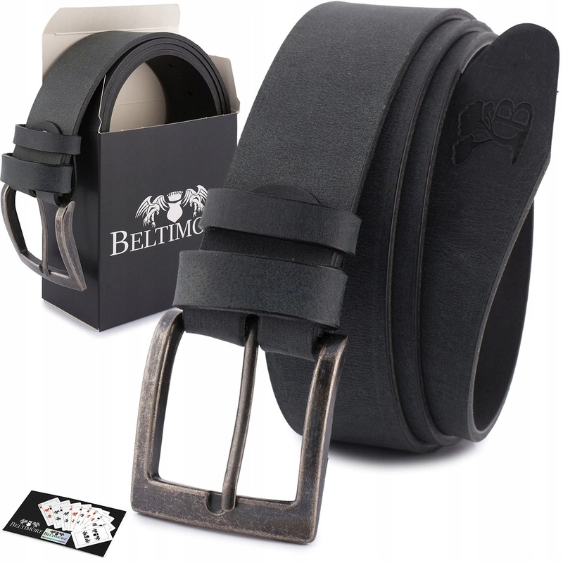 Pasek męski skórzany premium szeroki 4cm klasyczny czarny Beltimore Jeans E11 : Kolory - czarny, Rozmiar pasków - r.120-135 cm
