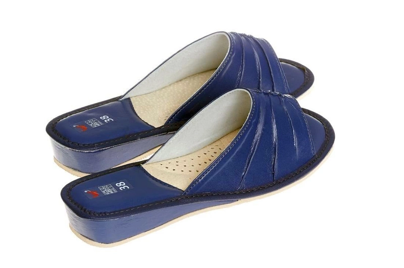 Damskie pantofle wykonane ze skóry naturalnej , dzięki temu możesz mieć pewność że są najwyższej jakości. Wsuwane na delikatnym 3,5cm klinie w modnej klasycznej kolorystyce.