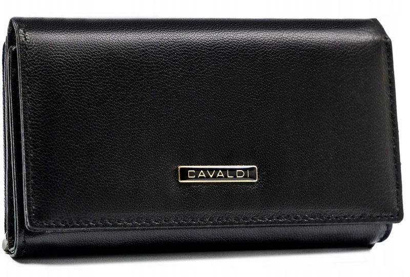 - CAVALDI to elegancka propozycja dla kobiet, które szukają połączenia funkcjonalności z klasycznym stylem. Z dużą liczbą przegródek na karty, kieszenią na monety i ochroną RFID, to portfel, który sprosta oczekiwaniom najbardziej wymagających użytkowniczek.