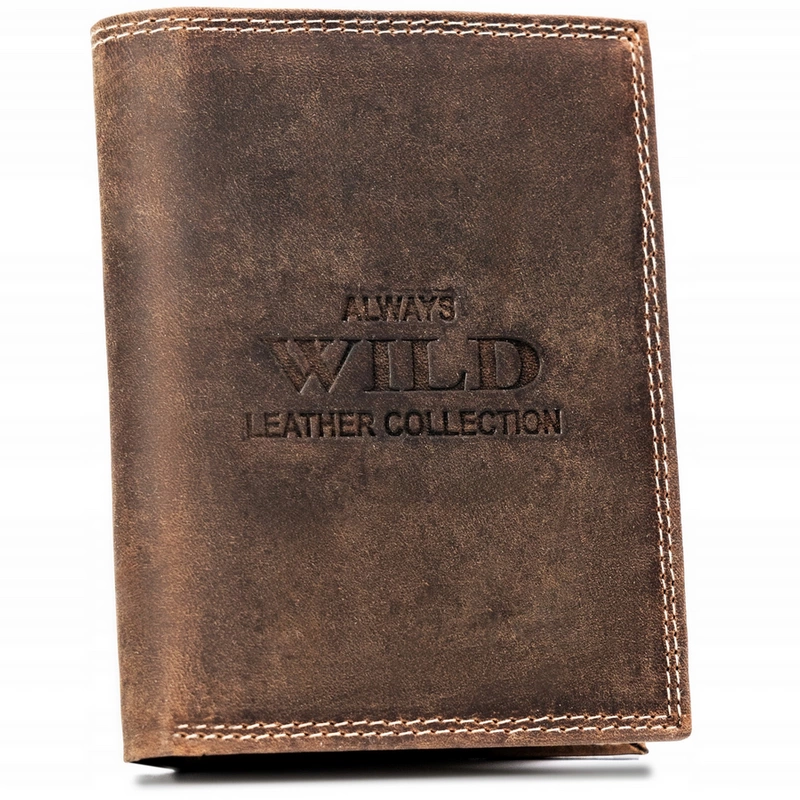 Portfel marki Always Wild to doskonały wybór dla mężczyzn ceniących sobie klasyczny design i praktyczne rozwiązania. Wykonany z wysokiej jakości naturalnej skóry, wyróżnia się trwałością i elegancją, a jego duży rozmiar i pionowa orientacja zapewniają przestronność i wygodę użytkowania.
