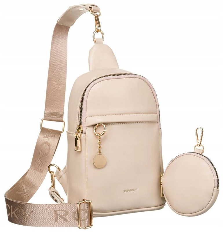 • Wykonana ze skóry ekologicznej o gładkiej fakturze. Można ją nosić na różne sposoby: na plecach i przez ramię. Saszetka jednokomorowa na suwak. Posiada trzy dodatkowe kieszonki. Zawieszona na zdobionym, regulowanym pasku parcianym.