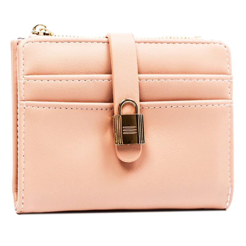 Portfel wyróżnia się prostotą formy i klasycznym, ponadczasowym wyglądem. Pozioma orientacja oraz brak wzoru sprawiają, że pasuje on zarówno do codziennych, jak i bardziej oficjalnych stylizacji. Złote okucia oraz nietypowe zapięcie w formie zatrzasku imitującego mini kłódkę dodają mu szyku i unikalnego charakteru. Widoczne logo producenta podkreśla renomę marki, czyniąc portfel modnym akcesorium.