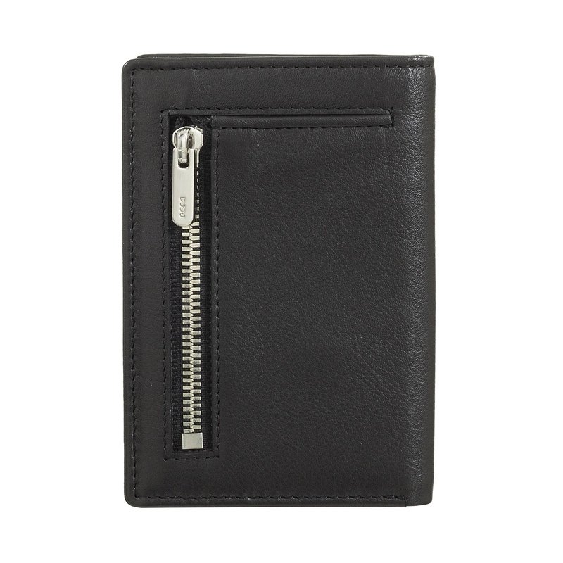 Portfel został wyposażony w sześć przegródek na karty oraz jedną przestronną komorę. Znajdziesz tu także zasuwaną kieszeń zewnętrzną – idealną na monety. Brak zapięcia zapewnia szybki dostęp do zawartości, a starannie dobrane wykończenia świadczą o wysokiej jakości wykonania.