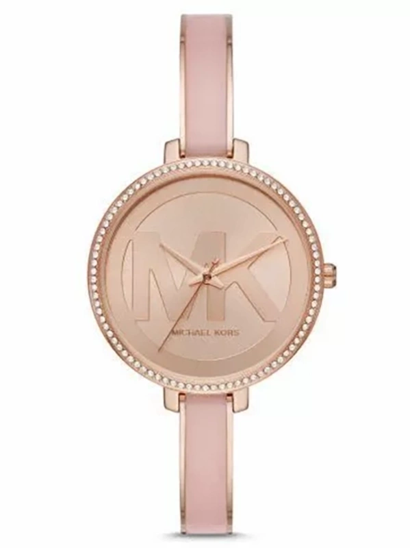 Zegarek Damski Michael Kors Jaryn MK4545 to stylowy, klasyczny i elegancki model dla każdej kobiety. Zegarek ten został wykonany w całości ze stali szlachetnej w kolorze różu i różowego złota, co gwarantuje wieloletnią odporność na zniszczenie. Za niezawodne działanie urządzenia odpowiada dokładny mechanizm kwarcowy zasilany baterią.