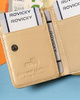 - 7 przegródek dedykowanych na karty, wizytówki lub dokumenty o standardowym formacie (np. dowód osobisty).