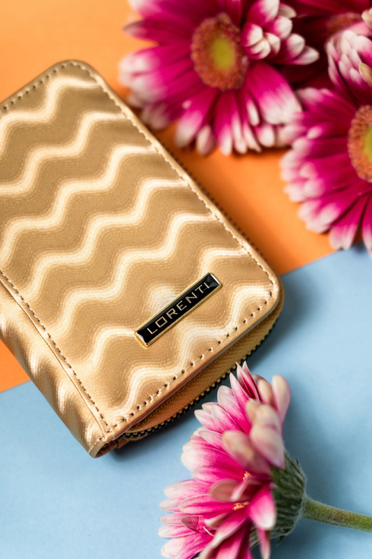 Mały portfel damski ze skóry naturalnej ze wzorem fal - Lorenti