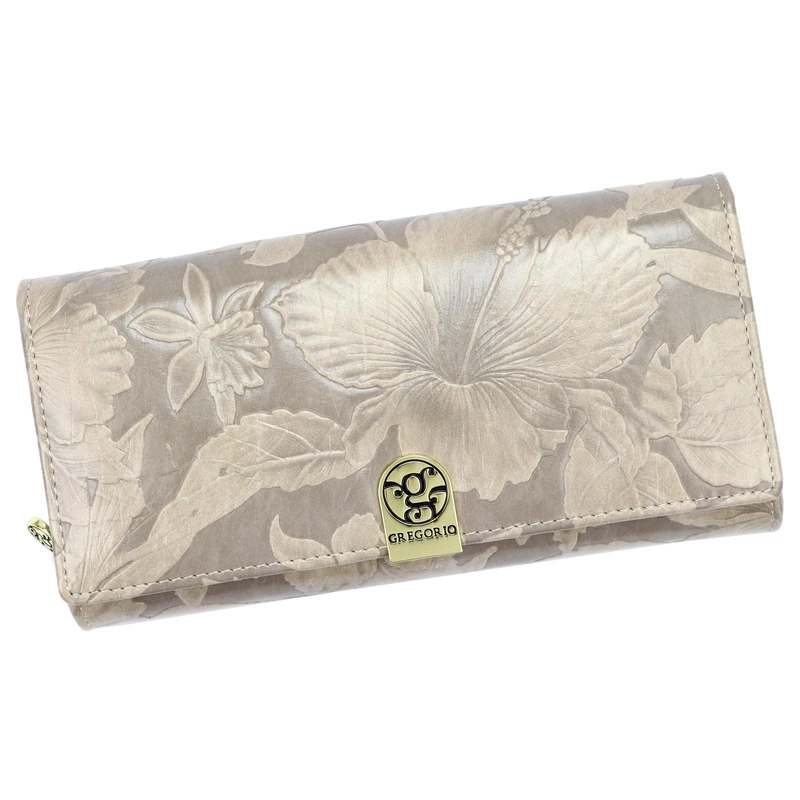 Gregorio podłużny damski portfel duży skóra naturalna kwiatowy wzór