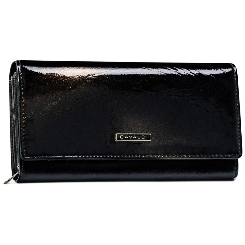 Portfel 4U CAVALDI to elegancki wybór dla kobiet, które cenią sobie styl, przestronność oraz wygodę. Wykonany z wysokiej jakości lakierowanej skóry, zachwyca subtelnym połyskiem i delikatną fakturą, która dodaje mu wyjątkowego charakteru. Srebrne okucia w połączeniu z prostym designem sprawiają, że portfel świetnie komponuje się z różnymi stylizacjami.