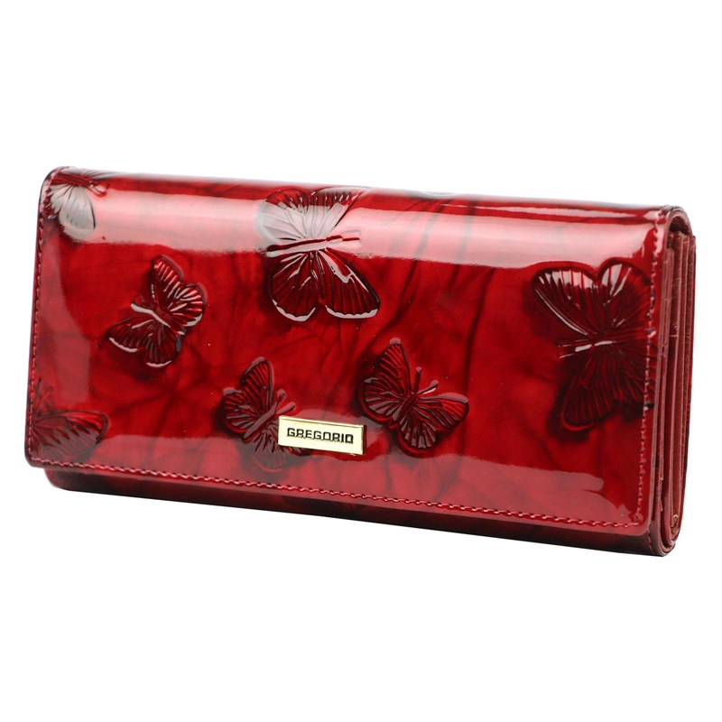 • Ten klasyczny, podłużny portfel Gregorio to doskonały wybór dla kobiet ceniących styl i funkcjonalność. Lakierowana skóra o motylkowym wzorze, przemyślane wnętrze z licznymi przegrodami i kieszeniami. Zapraszamy do zakupów.