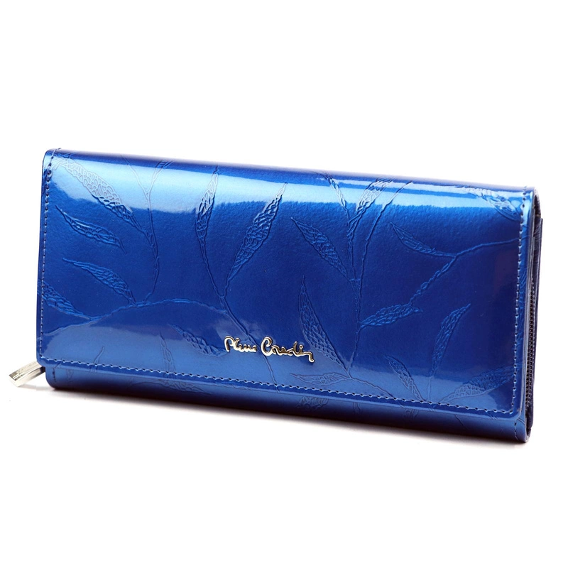 Portfel damski Pierre Cardin to synonim klasy i funkcjonalności. Zaprojektowany z myślą o wymagających kobietach, które cenią sobie wysoką jakość i niebanalny styl. Wykonany z naturalnej, lakierowanej skóry o wyjątkowym wzorze liści, portfel przyciąga uwagę i staje się modnym dodatkiem na co dzień. Srebrne okucia oraz widoczne logo producenta podkreślają jego prestiżowy charakter.