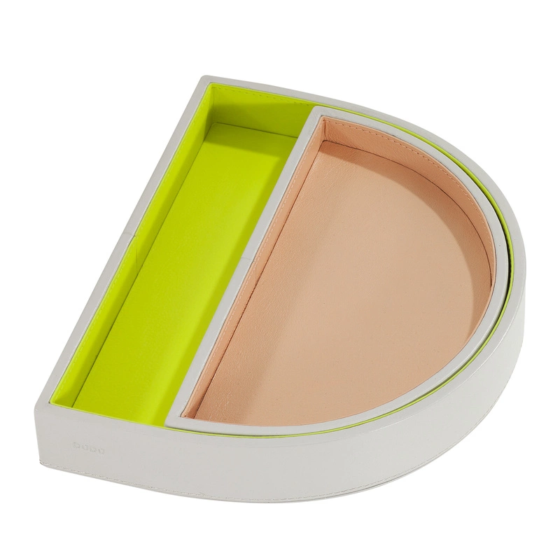Charakterystyczna, sztywna forma w kształcie litery D sprawia, że pojemnik jest nie tylko funkcjonalny, ale również stanowi designerski akcent na każdym biurku. Podwójna taca umożliwia wygodne uporządkowanie dokumentów, notatek, korespondencji czy akcesoriów biurowych, dzięki czemu wszystko jest zawsze pod ręką.
