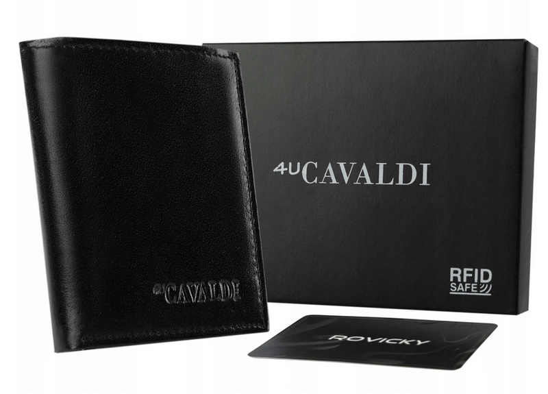 Portfel zapakowany jest w oryginalne pudełko marki 4U CAVALDI, dzięki czemu doskonale sprawdzi się jako stylowy i praktyczny prezent dla mężczyzny.