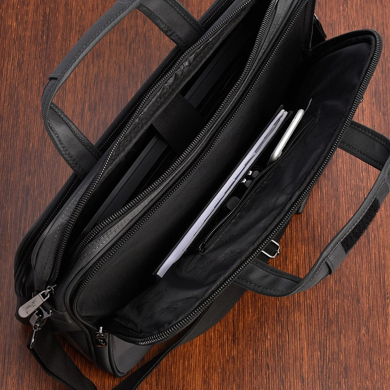 2. 3 Komory na Organizację: Trzy oddzielne komory pozwalają na idealną organizację Twoich rzeczy. Duża kieszeń główna pomieści dokumenty w formacie A4, a także laptopa o rozmiarze do 15,6 cali. Dwie dodatkowe komory idealnie sprawdzą się na akcesoria, telefon, tablet, czy inne drobiazgi. Torba sprawdzi się również na lotnisko, gdyż wyposażona jest w specjalny pas, który pozwala założyć ją na walizkę