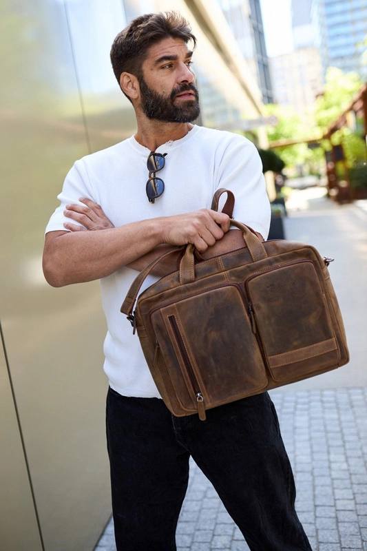 • Torba na laptopa wyprodukowana z wysokogatunkowej, trwałej skóry naturalnej, specjalnie postarzanej