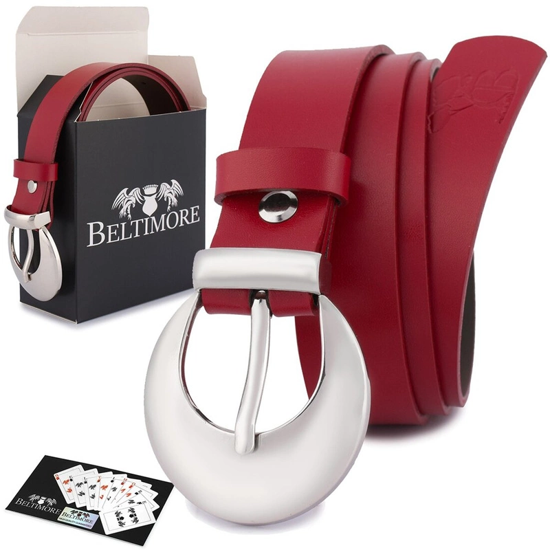 Piękny, skórzany, damski pasek do spodni marki Beltimore®.