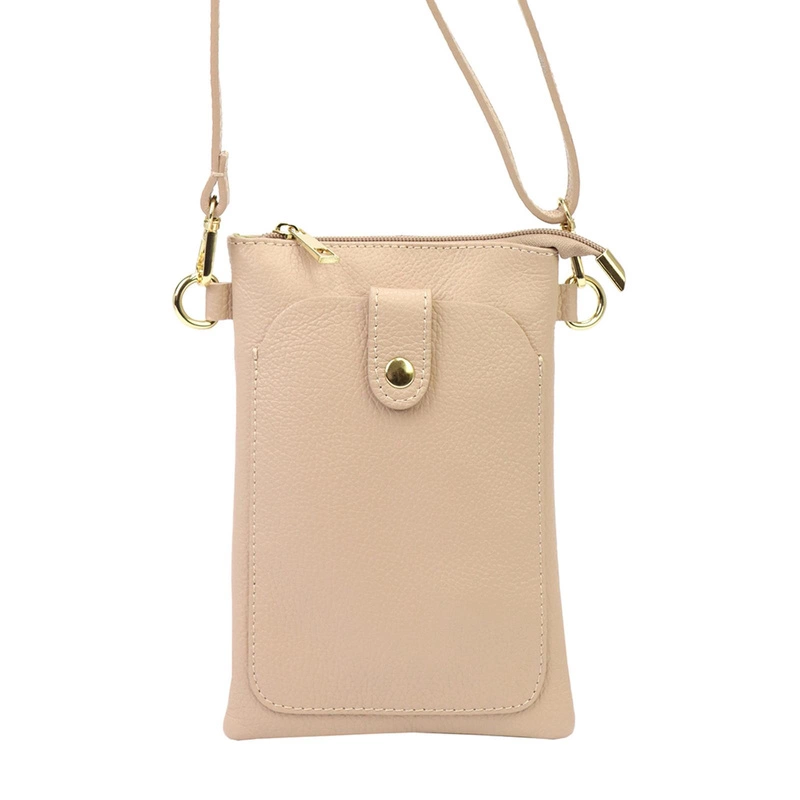 Skórzane damskie etui na telefon z paskiem zasuwane mała listonoszka Luka