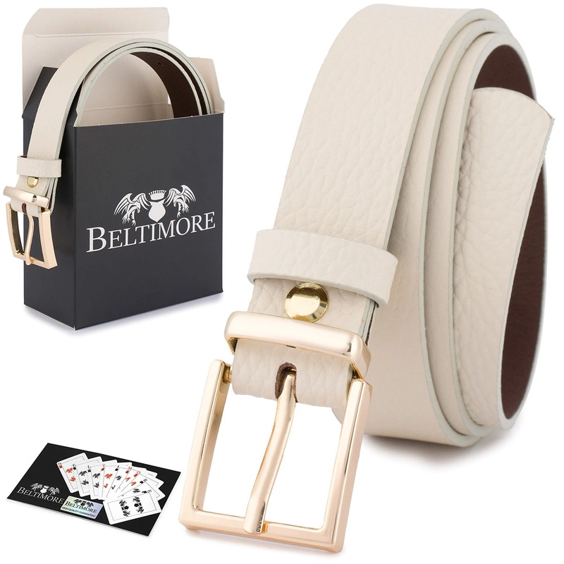 Elegancki, skórzany, damski pasek do spodni w beżowym kolorze marki Beltimore®.