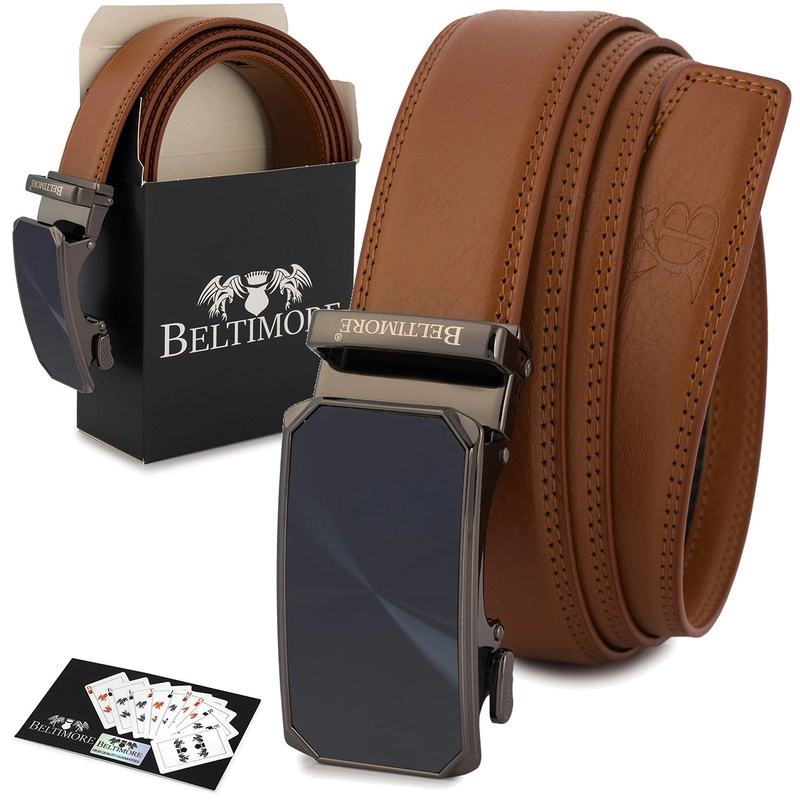 Elegancki, brązowy, skórzany pasek męski marki Beltimore®. Wykonany z najwyższej jakości materiałów, z dbałością o szczegóły. Pasek dedykowany jest do spodni casualowych lub do garnituru. Każdy pasek ma szerokość 3,5 cm, pasować będzie zatem do wszystkich spodni.