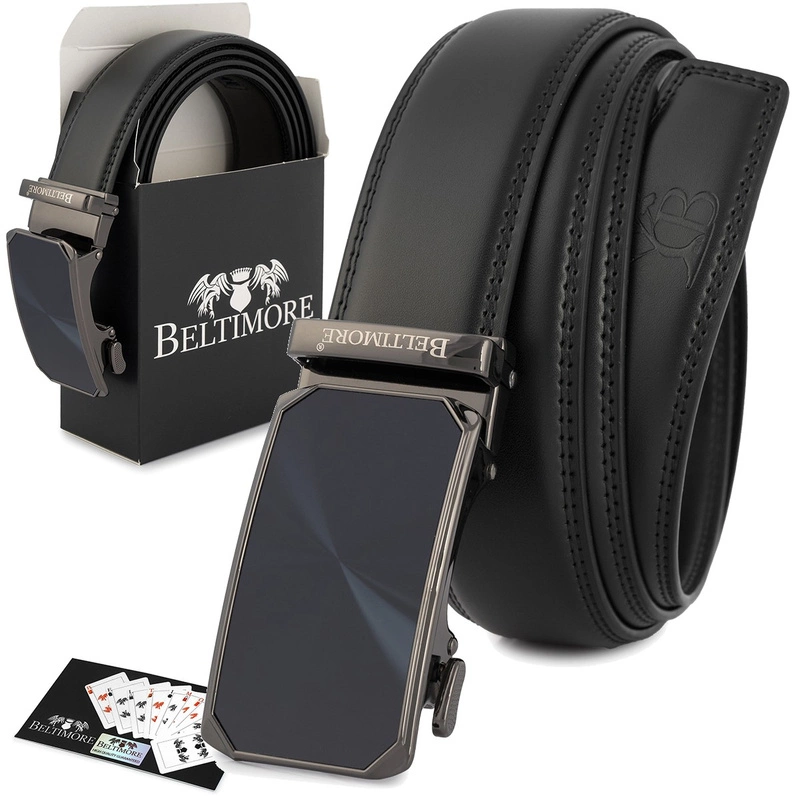 Elegancki, czarny, skórzany pasek męski marki Beltimore®. Wykonany z najwyższej jakości materiałów, z dbałością o szczegóły. Pasek dedykowany jest do spodni casualowych lub do garnituru. Każdy pasek ma szerokość 3,5 cm, pasować będzie zatem do wszystkich spodni.