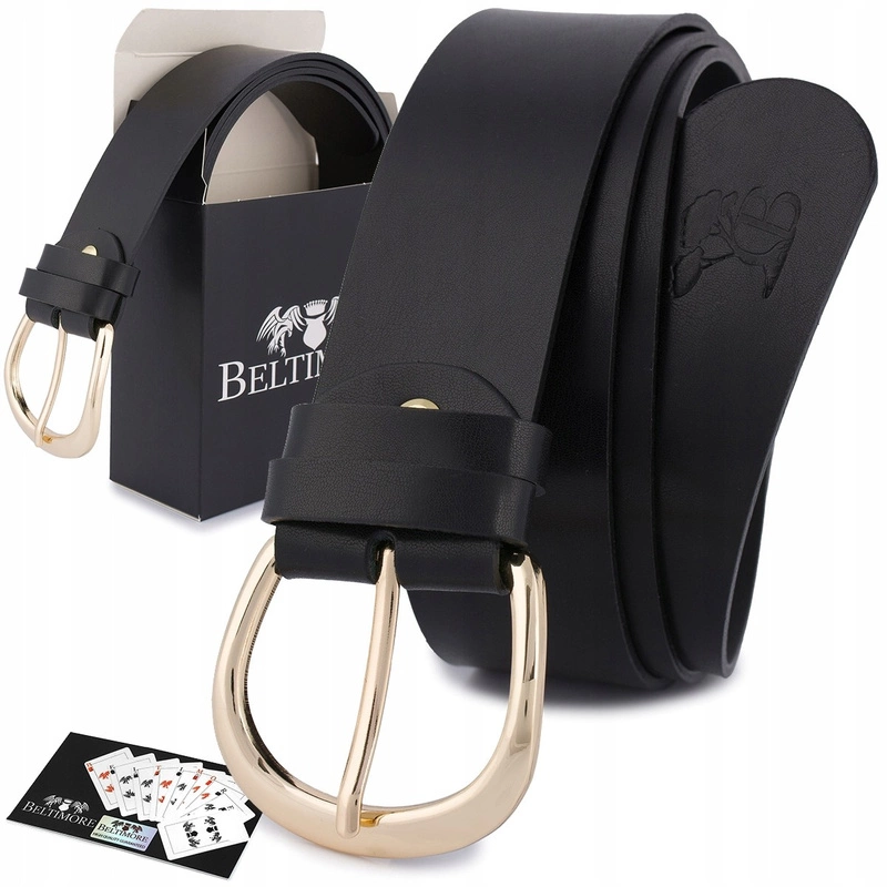 Skórzany pasek damski do spodni sukienki czarna skóra nat 4 cm Beltimore D83 : Kolory - czarny, Rozmiar pasków - r.110-125 cm