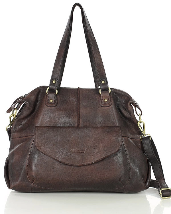 Elegancka torebka na co dzień w ciemnobrązowym odcieniu - Wykonanie z miękkiej skóry naturalnej