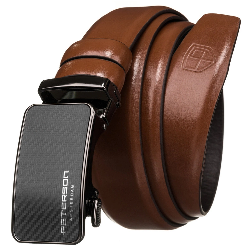 Skórzany, szeroki pasek męski z klamrą automatyczną - Peterson