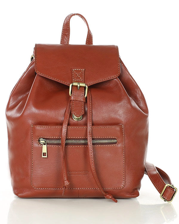 Plecak brązowy damski z kieszenią skóra naturalna - MARCO MAZZINI brąz whisky