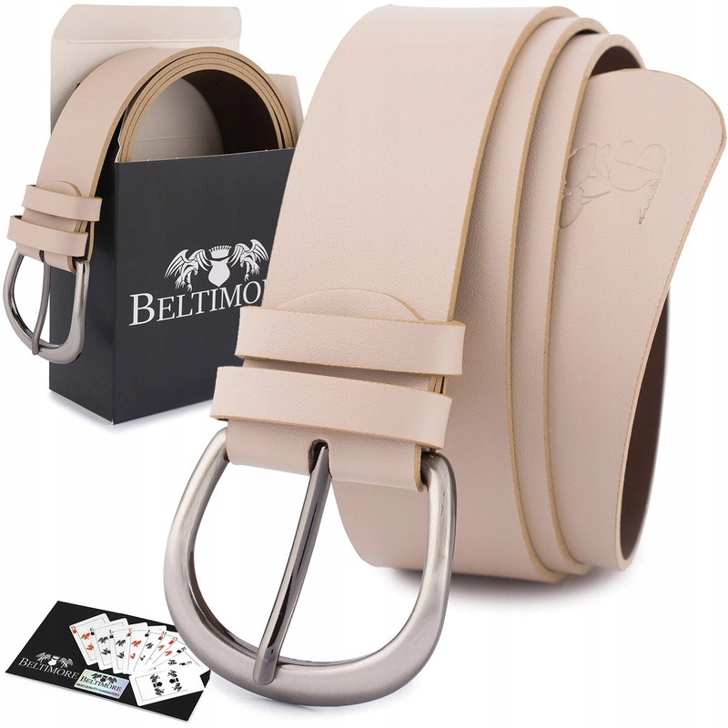 Skórzany pasek damski do spodni sukienki cielisty skóra nat 4 cm Beltimore D88 : Kolory - ecru, kremowy, Rozmiar pasków - r.110-125 cm