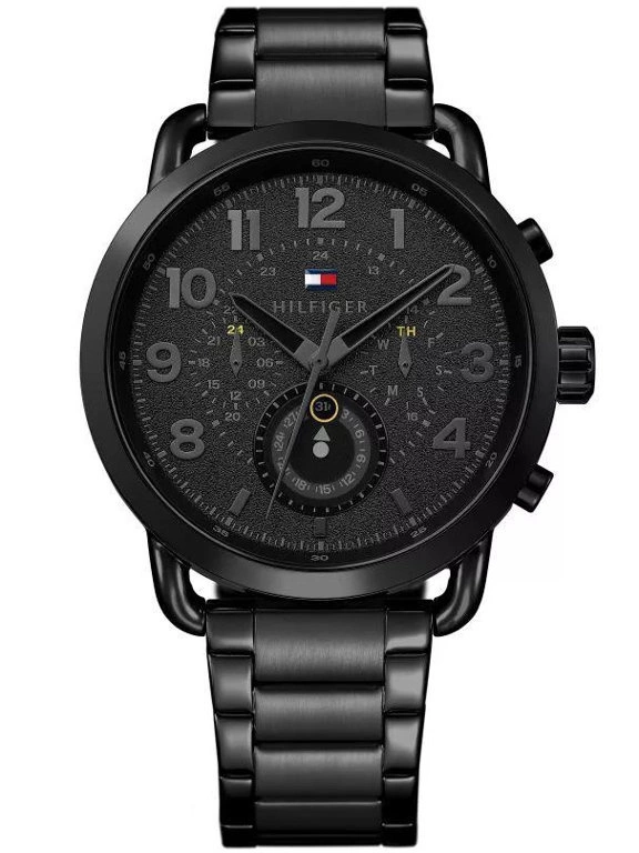 Zegarek męski Tommy Hilfiger 1791423 Briggs to stylowy męski zegarek, idealny zarówno do eleganckiego ubioru, jak i do noszenia na co dzień. Bransoletka oraz koperta wykonane zostały ze stali szlachetnej w kolorze czarnym. Na tarczy zabezpieczonej mineralnym szkłem znajdziemy datownik wskazujący dzień miesiąca oraz subtarcze będące wskazaniami dni tygodnia, aktualnej daty oraz 24h czasu dobowego. Klasa wodoszczelności czasomierza TH 1791423 to WR50, co gwarantuje szczelność zegarka w przypadku drobnych zachlapań.