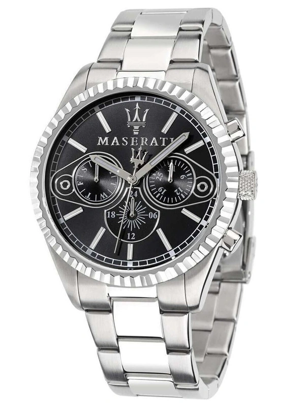 Zegarek Maserati Competizione R8853100014 to elegancki zegarek dla fanów motoryzacji i nie tylko. Na czarnej tarczy zabezpieczonej mineralnym szkłem znajdziemy subtarcze będące wskazaniami dnia tygodnia, dnia miesiąca i czasu dobowego.