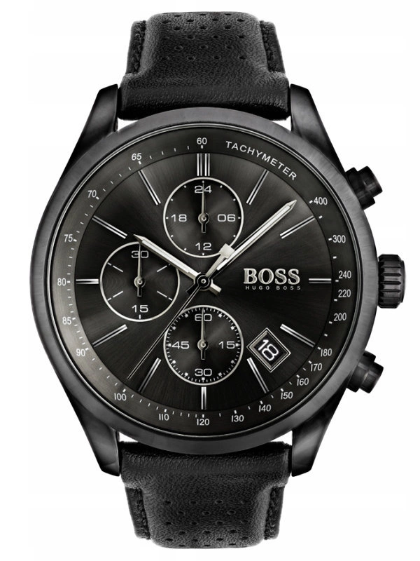 Zegarek niemieckiej marki Hugo Boss 1513474 Grand Prix wyposażono w precyzyjny japoński mechanizm kwarcowy, zasilany baterią o żywotności 2 lat. Czarny cyferblat czasomierza z wyraźnymi cyframi, pokryto szkiełkiem mineralnym, odpornym na stłuczenia. Kopertę wykonana ze stali szlachetnej umocowano na pasku skórzanym w kolorze czarnym. Model Hugo Boss 1513474 Grand Prix posiada kilka przydatnych funkcji, m.in: datownik w formie okienka na tarczy zlokalizowany między godziną 4;00 a 5;00, na którym można odczytać aktualną datę, tarczę 24-godzinną tzw. czas dobowy, oraz stoper w formie chronografu odmierzający czas do 60 minut.Wodoszczelność na poziomie 30m pozwala. Produkt marki Hugo Boss jest w stu procentach oryginalny, objęty 24 miesięczną gwarancją, posiada dodatkowo w komplecie oryginalne opakowanie producenta.