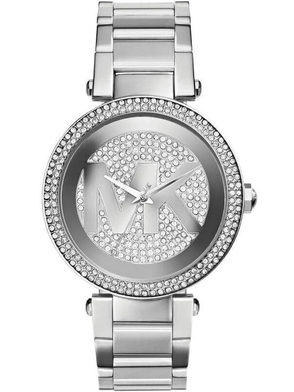 Zegarek Michael Kors Parker MK5925 to bardzo efektowny i kobiecy dodatek zarówno na co dzień, jak i do bardziej eleganckich stylizacji. Tarcza w kolorze srebrnym z dużym logo MK, ozdobiona cyrkoniami. Koperta i bransoleta wykonana ze stali szlachetnej w kolorze srebrnym. Zastosowane szkło mineralne. Zegarek posiada szczelność na poziomie 100m co oznacza, że jest odporny na zanurzenia.