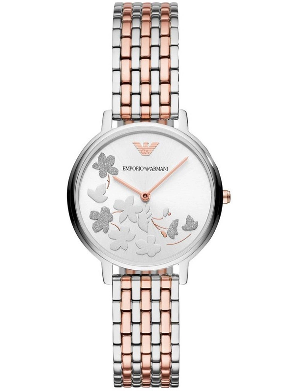 Damski zegarek Emporio Armani AR11113 to elegancki damski zegarek idealny na każdą okazję. Koperta oraz bransoleta zostały wykonane ze stali szlachetnej z powłoką PVD w kolorze różowego złota oraz srebra, co gwarantuje wieloletnią odporność na zniszczenie i odbarwienia. Model posiada dokładny mechanizm kwarcowy zasilany baterią. Białą tarczę zabezpiecza odporne na zarysowania szkło mineralne.