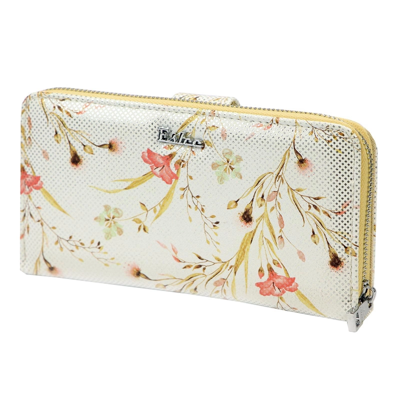 Portfel damski od marki eslee to idealna propozycja dla kobiet, które cenią sobie połączenie elegancji z praktycznością. Wykonany z wysokiej jakości skóry ekologicznej, portfel wyróżnia się pięknym kwiatowym wzorem, który nadaje mu wyjątkowego charakteru. Srebrne okucia dopełniają całości, tworząc luksusowy akcent, który przyciąga wzrok.