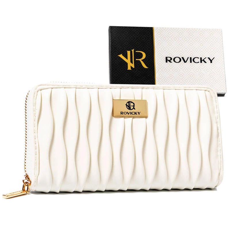 Biały portfel-piórnik damski ze skóry ekologicznej o marszczonej fakturze - Rovicky