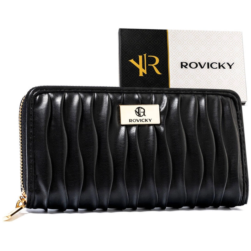 Duży portfel damski ze skóry ekologicznej w czarnym kolorze na zamek - Rovicky