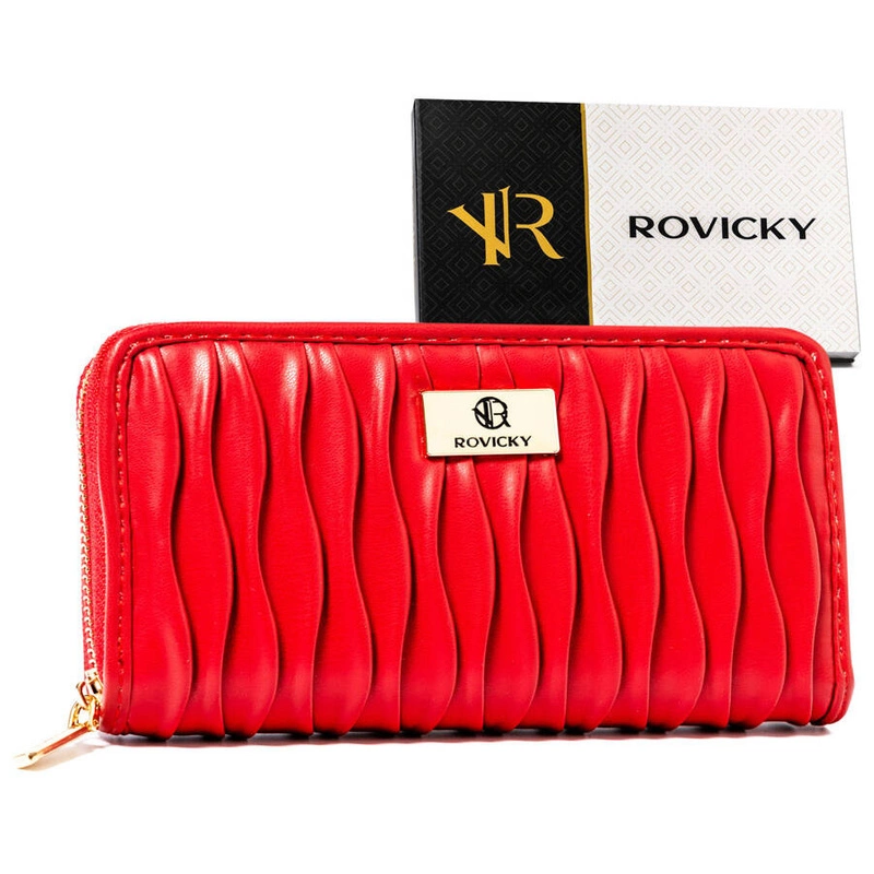 Czerwony portfel damski o marszczonej powierzchni zamykany na suwak - Rovicky